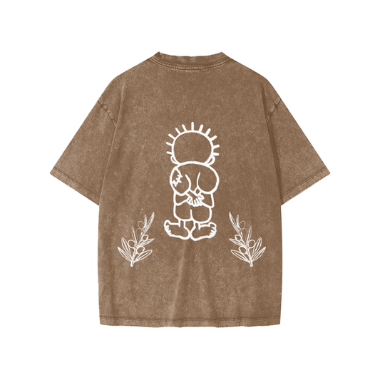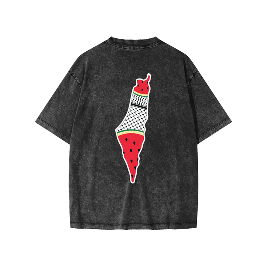 Stand in solidarity with timeless style. Our 100% cotton, acid-washed oversized apparel features bold Palestinian artistry, fusing heritage with vintage aesthetics. Most of our T-shirts also come in adult sizes so you can match. All T-shirts are oversized.
