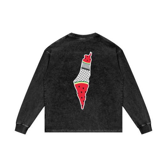Palestine Map with Kuffiyah Print and Watermelon Long Sleeve T-Shirt