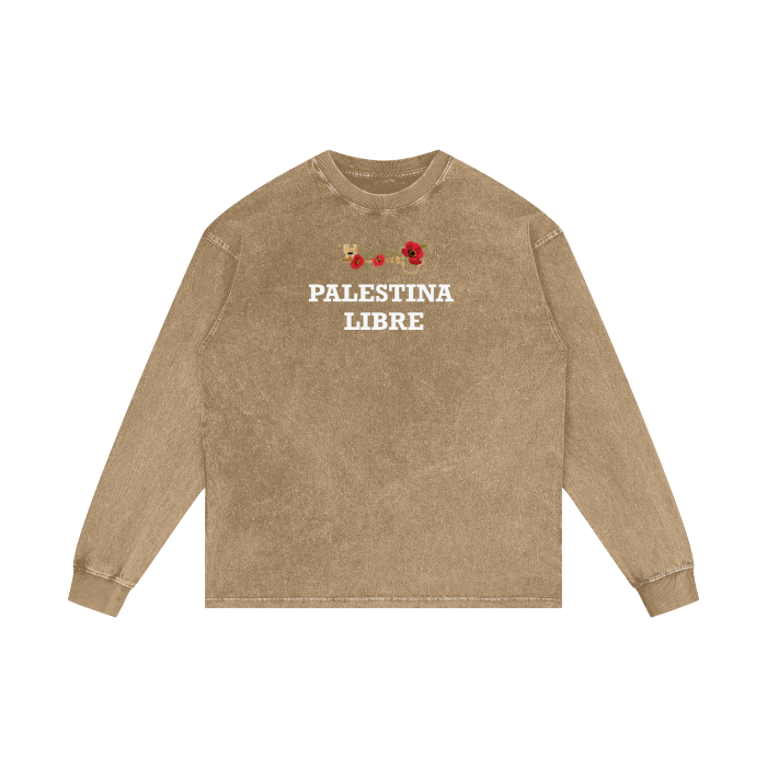 A soft, light stretchy, cotton oversized t-shirt featuring an original illustration of mine front and back designed. Tshirt reads: "We won't leave" in the front and in the back it says, "A generation that doesn’t know how to forget". Signifying the importance of our fight for liberation. While exhibiting the watermelon hand drawn illustration along with the kuffiya.
