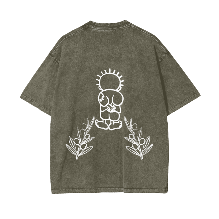 A soft, light stretchy, cotton oversized t-shirt featuring an original illustration of mine. Tshirt reads: Resistance until libertarian featuring Handala, a symbol and personification of the Palestinian people and their resistance. Handala was born 10 years old and he will always be 10 years old, it was at that age he left his homeland. Handala was drawn by the cartoonist Naji al-Ali.