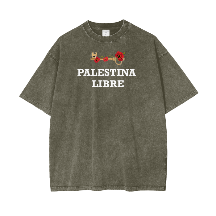 A soft, light stretchy, cotton oversized t-shirt featuring an original illustration of mine. Tshirt reads: Palestina Libre