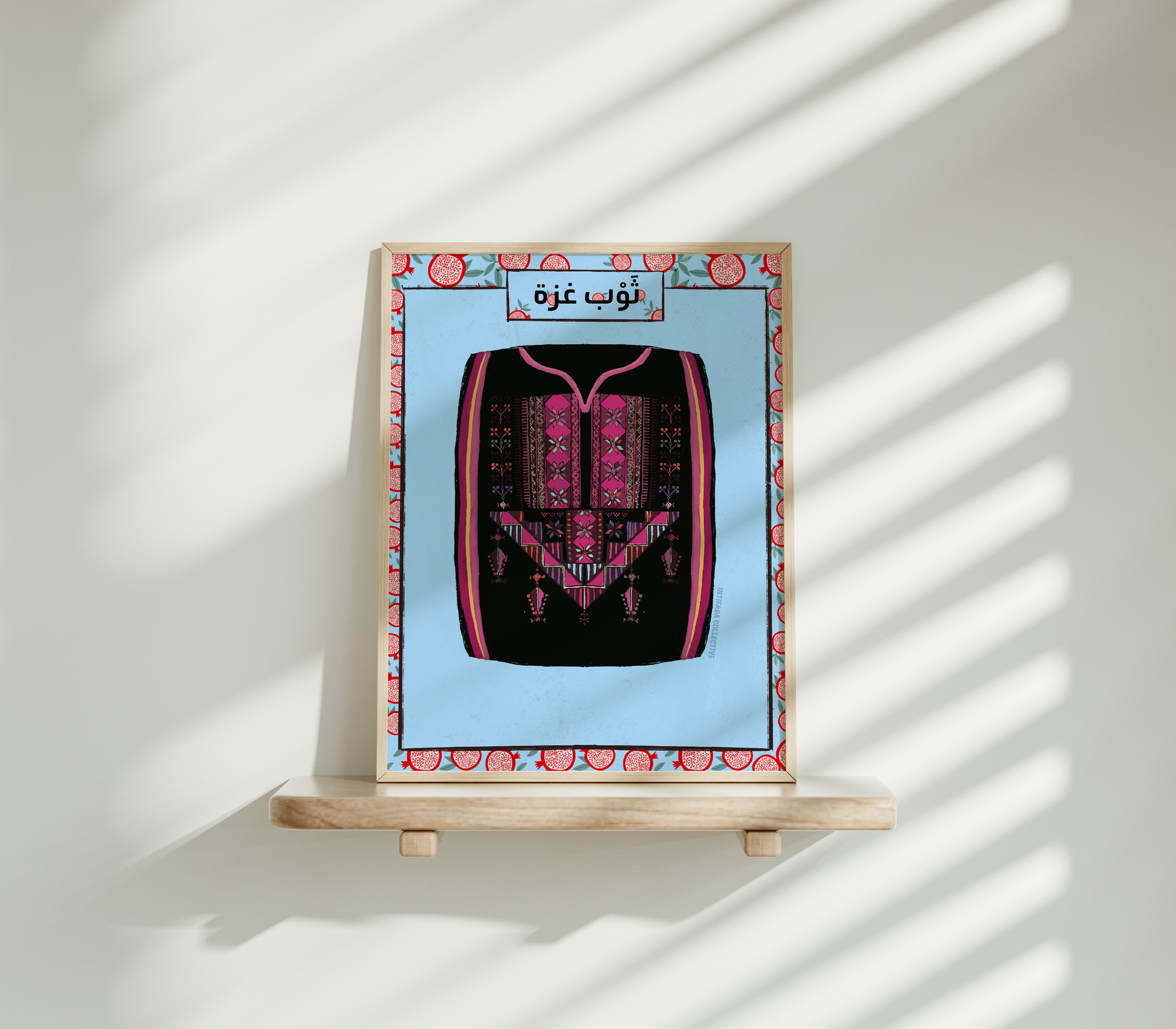 Gaza's Thoub Art Print is a high quality print of a digital illustration of mine showcasing Gaza's Vibrant Traditional Thoub. Sizes come in: 11" x 14" Matte Finish • Giclée print for Bright and intense colors for your desired design that will not fade when exposed to sunlight regularly • Prints are hand rolled in protective tissue paper and shipped in a extra thick triangle boxes or tubes. Boxes will be used for posters smaller than 24'', and tubes will be used for all sizes 24'' and above.
