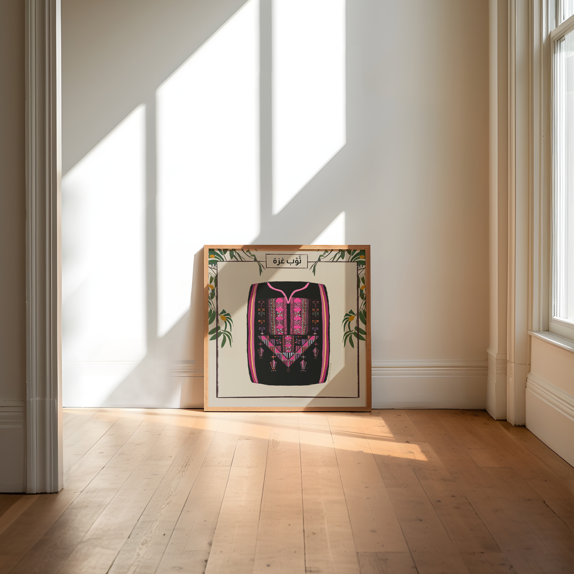 Gaza's Thoub Art Print is a high quality print of a digital illustration of mine showcasing Gaza's Vibrant Traditional Thoub.