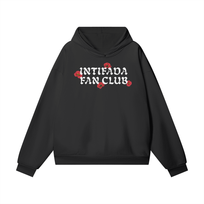 Premium Oversized Heavyweight Hidden Pocket Fleece Hoodie | Unisex | featuring an original illustration of mine. Hoodie reads: Intifada Fan Club with the key of return