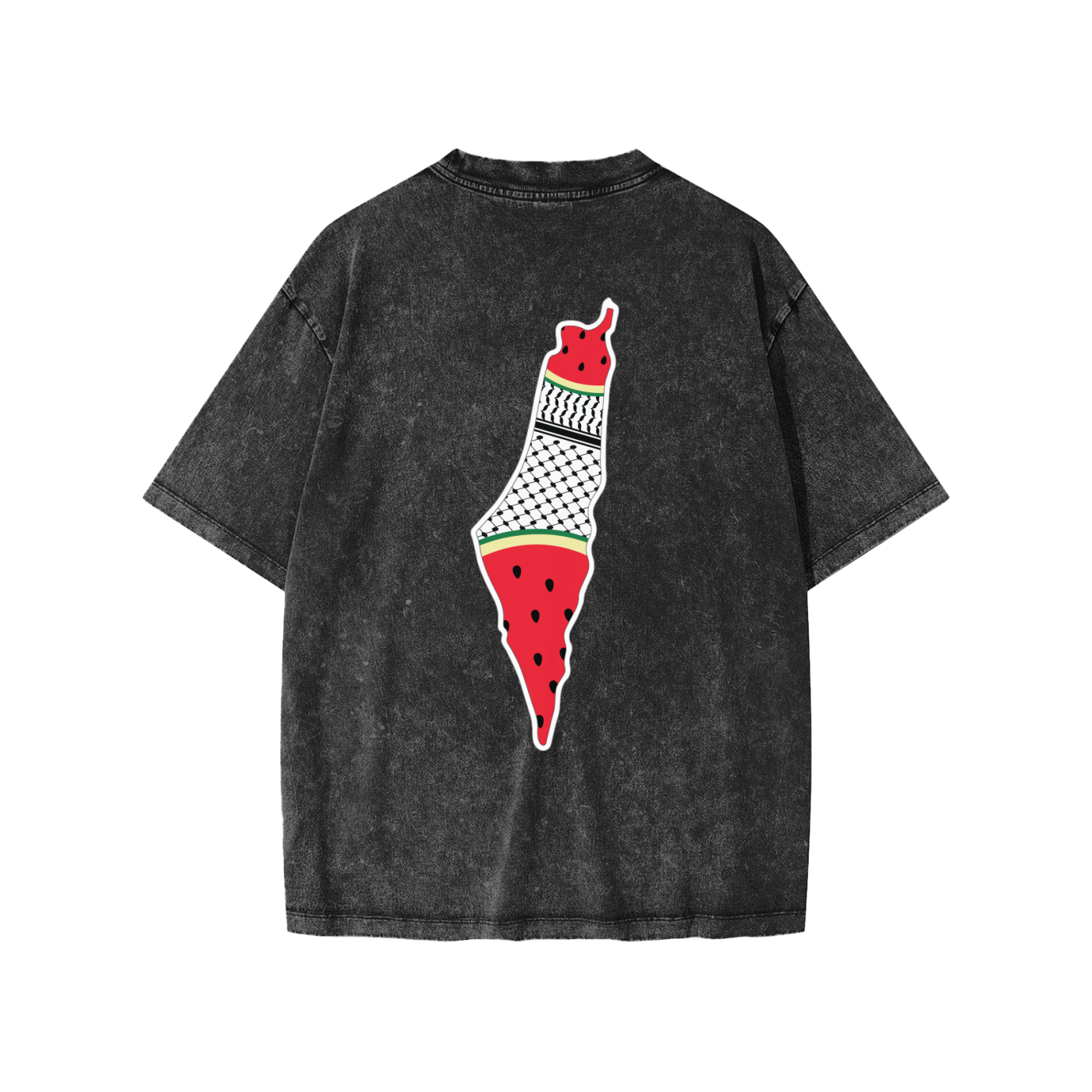 Palestine Map with Kuffiyah Print and Watermelon Kids T-shirt